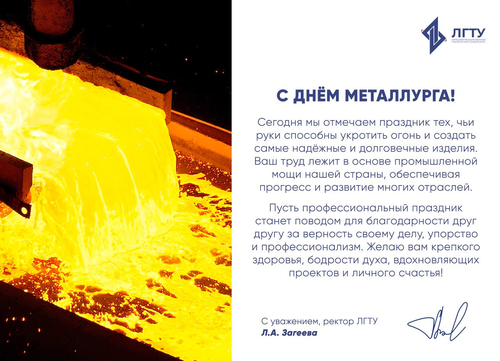 Поздравление ректора ЛГТУ Загеевой Лилии Александровны с Днём металлурга