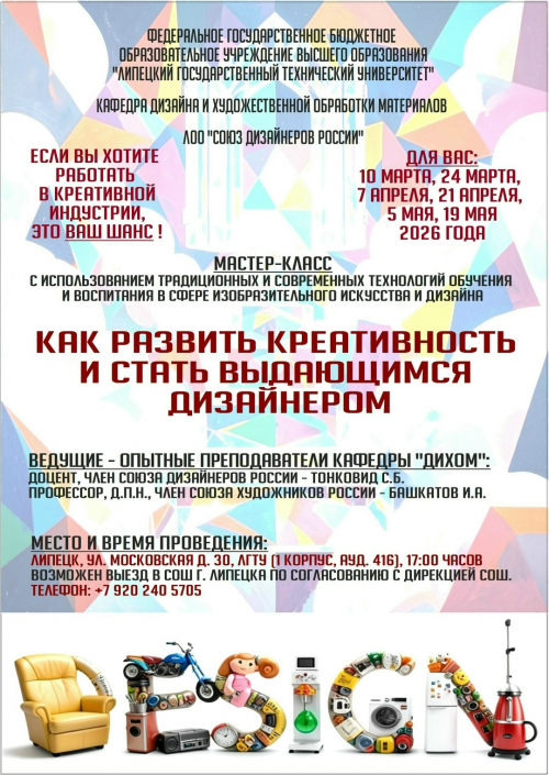 Приглашаем абитуриентов, заинтересованных в развитии творческих способностей и получении навыков работы дизайнером, на мастер-классы от преподавателей ЛГТУ!