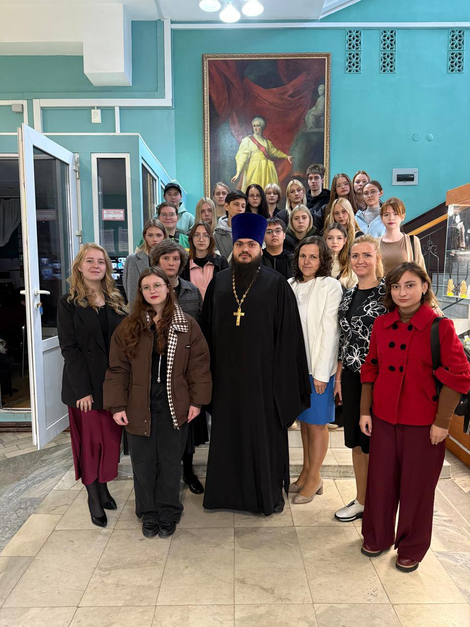 Настоятель Космо-Дамиановского храма с.Казинка, иерей Марк Кантарюк, а также студены и преподаватели кафедры дизайна и художественной обработки материалов посетили выставку на тему «Святитель Лука – врач, педагог, пастырь».