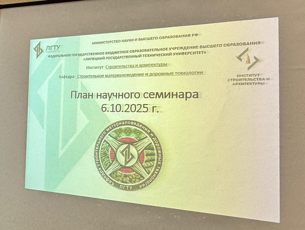Сегодня, 6 октября 2025 года, в Институте строительства и архитектуры ЛГТУ прошел научный семинар на базе кафедры строительного материаловедения и дорожных технологий. Семинар был посвящен ключевым вопросам публикации научных статей и перспективам развития инженерной науки.