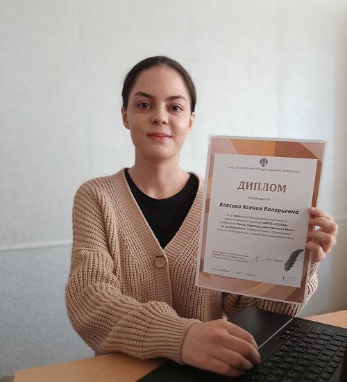 Студентка 4 курса специальности «Перевод и переводоведение» Власова Ксения заняла 3 место в номинации «Перевод прозы c немецкого языка на русский язык»