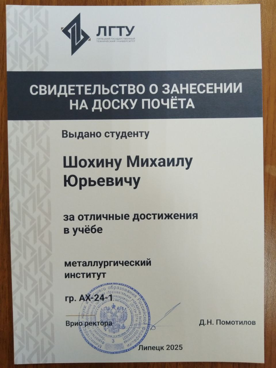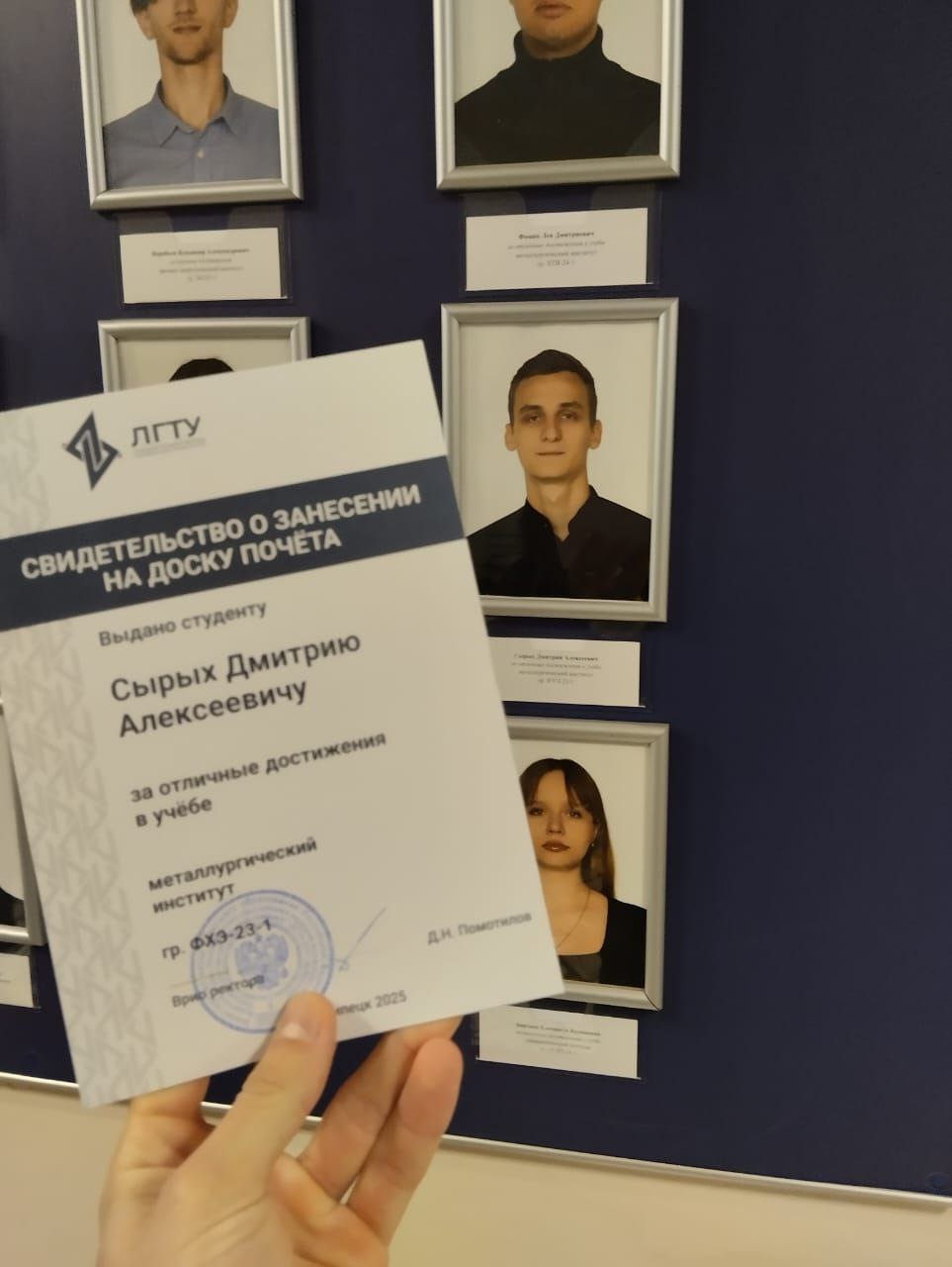 Лучших студентов Металлургического института отметили занесением на доску почета студентов: