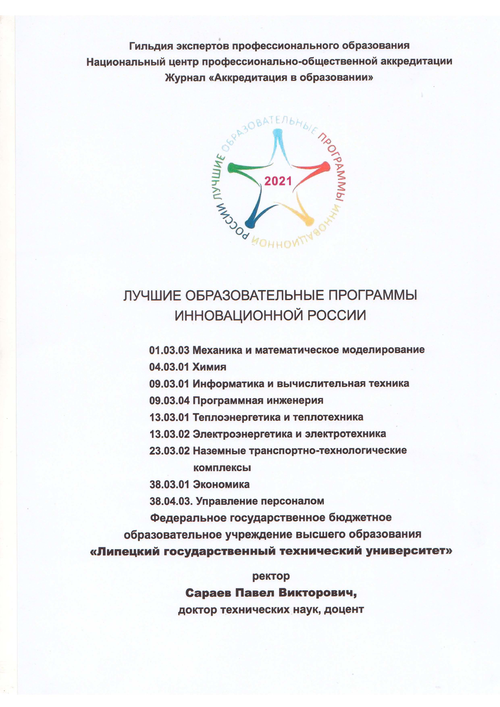 Образовательная программа Липецкого государственного технического университета 23.03.02 "Наземные транспортно-технологические комплексы" профиль "САПР мобильных машин" вошла в перечень лучших образовательных программ инновационной России