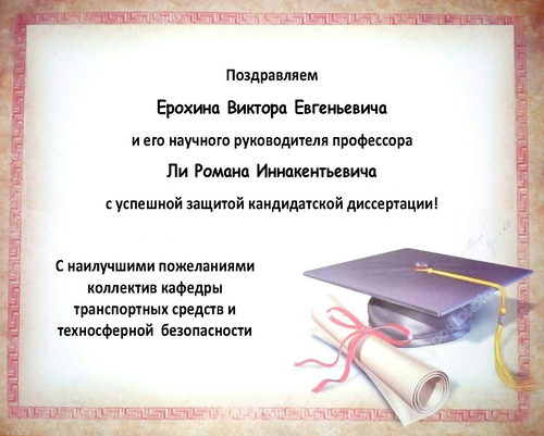 Заведующий лабораторией кафедры ТС и ТБ Быконя Андрей Николаевич защитил кандидатскую диссертацию
