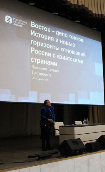 Куратор Российского общества «Знание» в ЛГТУ, д.э.н., профессор Т.Г. Пыльнева 29 января в администрации Лев-Толстовского района провела лекцию на тему «История и новые горизонты отношений России с азиатскими странами». Слушателями стали 260 человек, среди которых- главы муниципальных образований, директора школ района, руководители производственных предприятий.