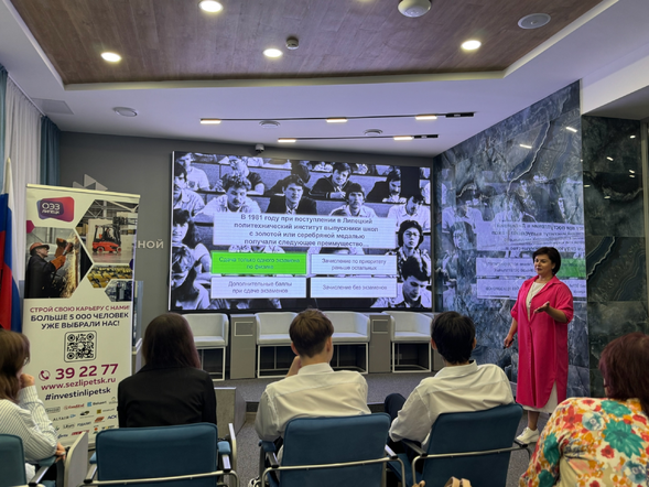 Светлана Игоревна Яковлева, начальник отдела по профориентационной работе ЛГТУ, которая познакомила школьников с программами университета, внеучебной жизнью и возможностями для поступающих.