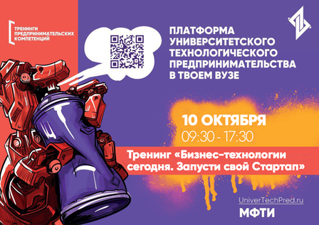 «Тренинги предпринимательских компетенций» проходят в рамках федерального проекта «Платформа университетского технологического предпринимательства», созданного для раскрытия предпринимательского потенциала и подготовки профессионалов в области технологического предпринимательства.