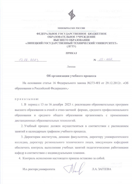 Внимательно следите за личным кабинетом на сайте ЛГТУ.