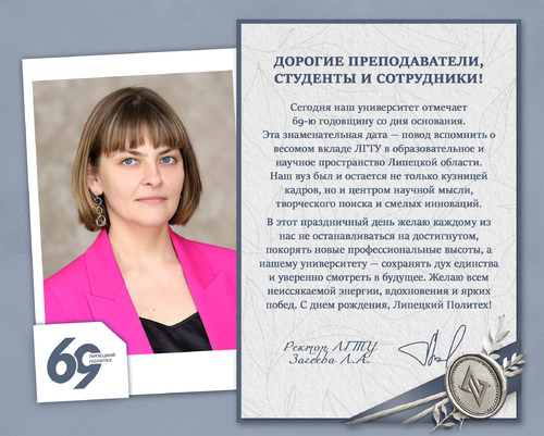 Поздравление ректора ЛГТУ Загеевой Лилии Александровны с Днём Университета