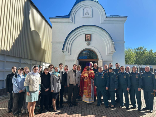 6 мая в храме-часовне при Главном управлении МЧС по Липецкой области состоялось праздничное богослужение в честь святого великомученика Георгия Победоносца, которое совершил иерей Марк Кантарюк, настоятель Космо-Дамиановского храма села Казинка, ответственный сектора МЧС епархиального отдела по взаимодействию с Вооруженными силами и правоохранительными органами.
