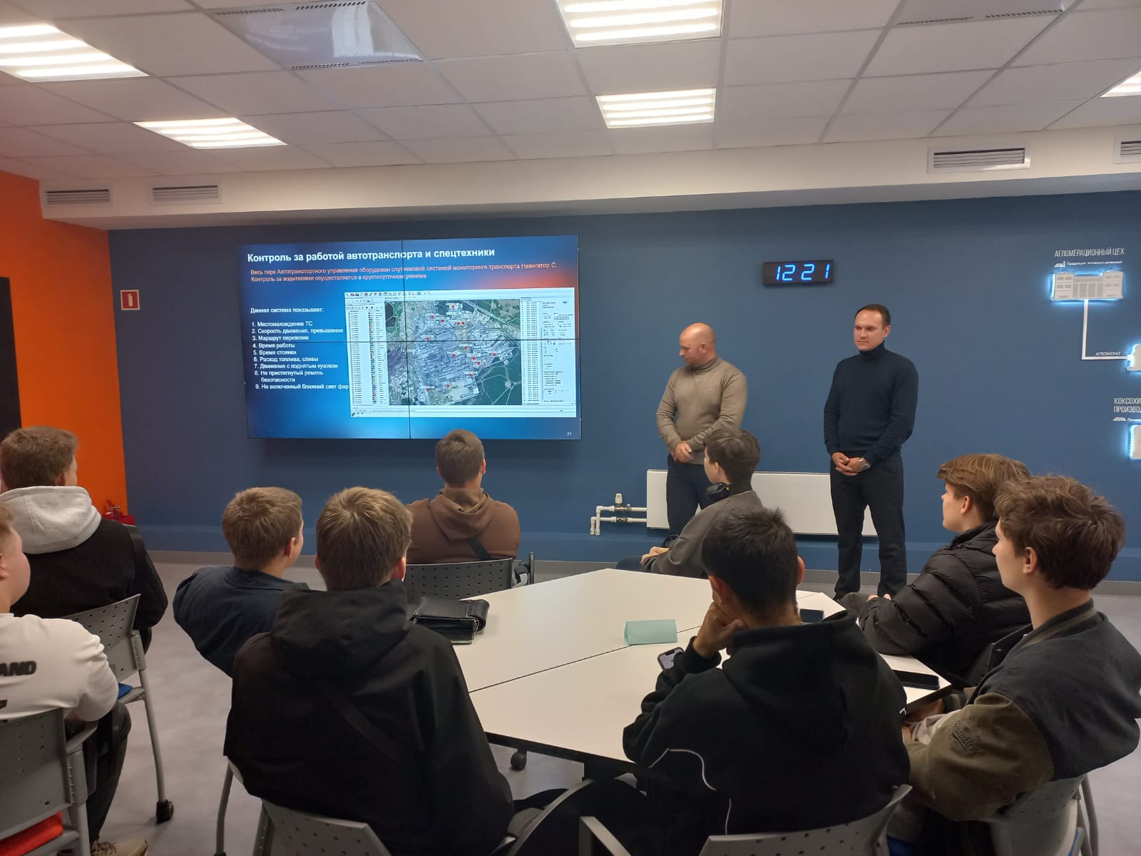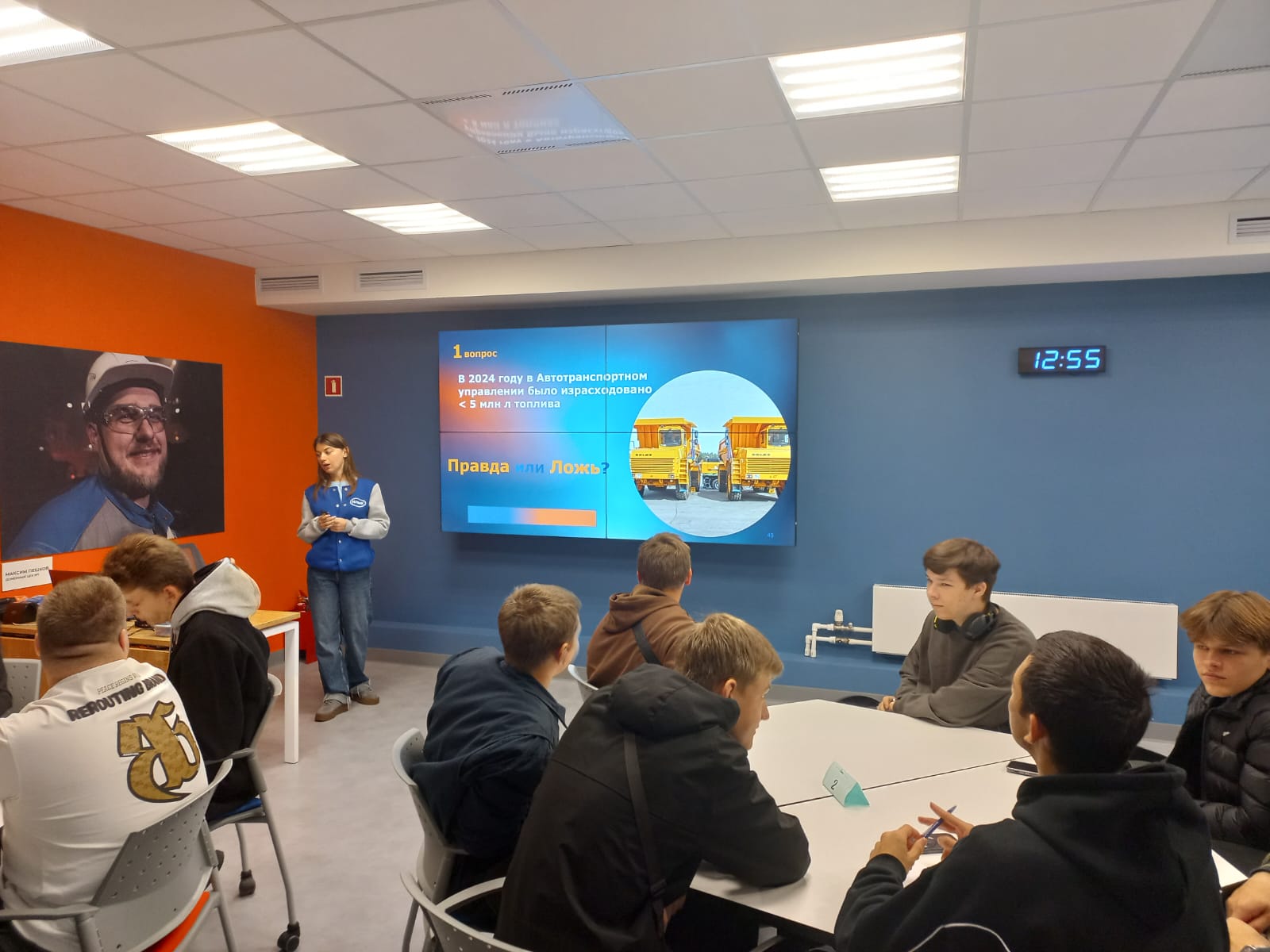 В Центре карьеры НЛМК будущих транспортников в начале встречи познакомили с общей информацией о предприятии, а затем представители Автотранспортного управления подробнее осветили работу своих служб и направление «Логистика».