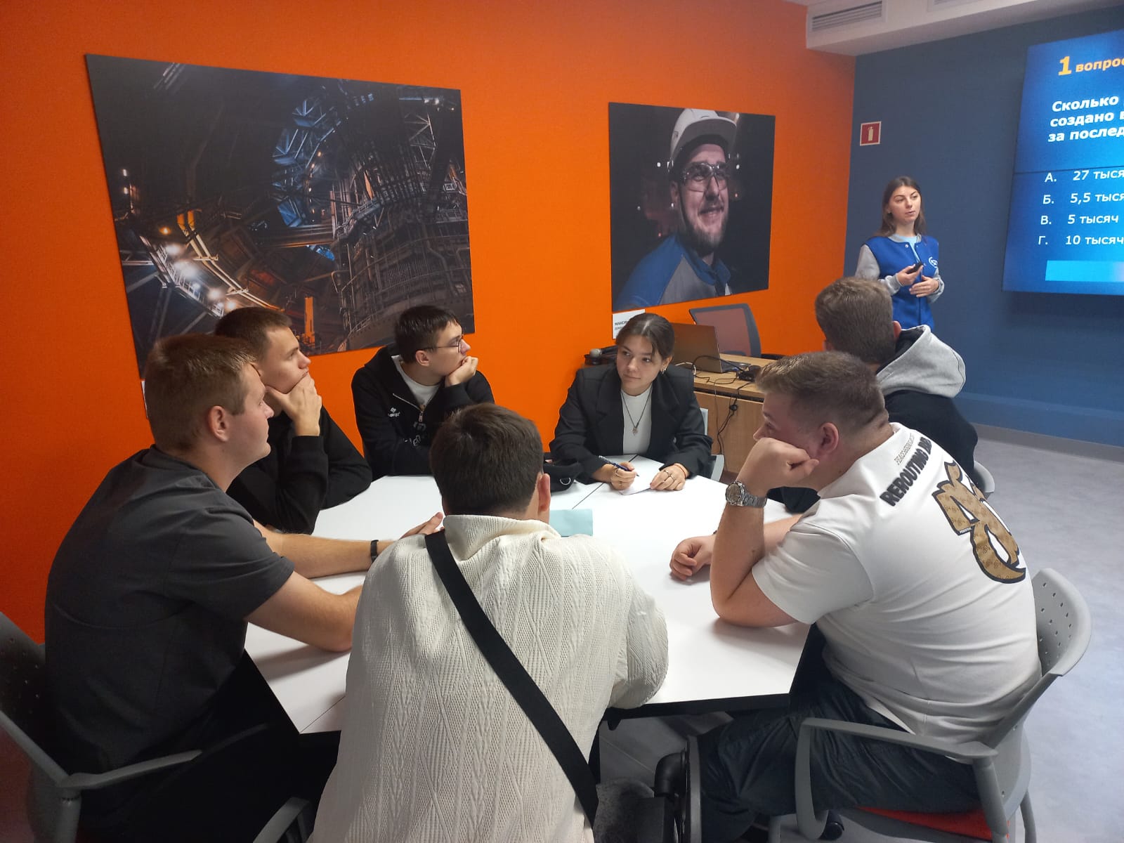 Встреча закончилась игрой в квиз, посвященный истории ПАО «НЛМК» и работе различных видов транспорта. Состязание проводилось в пять раундов, а его участники были произвольно разделены на пять команд.