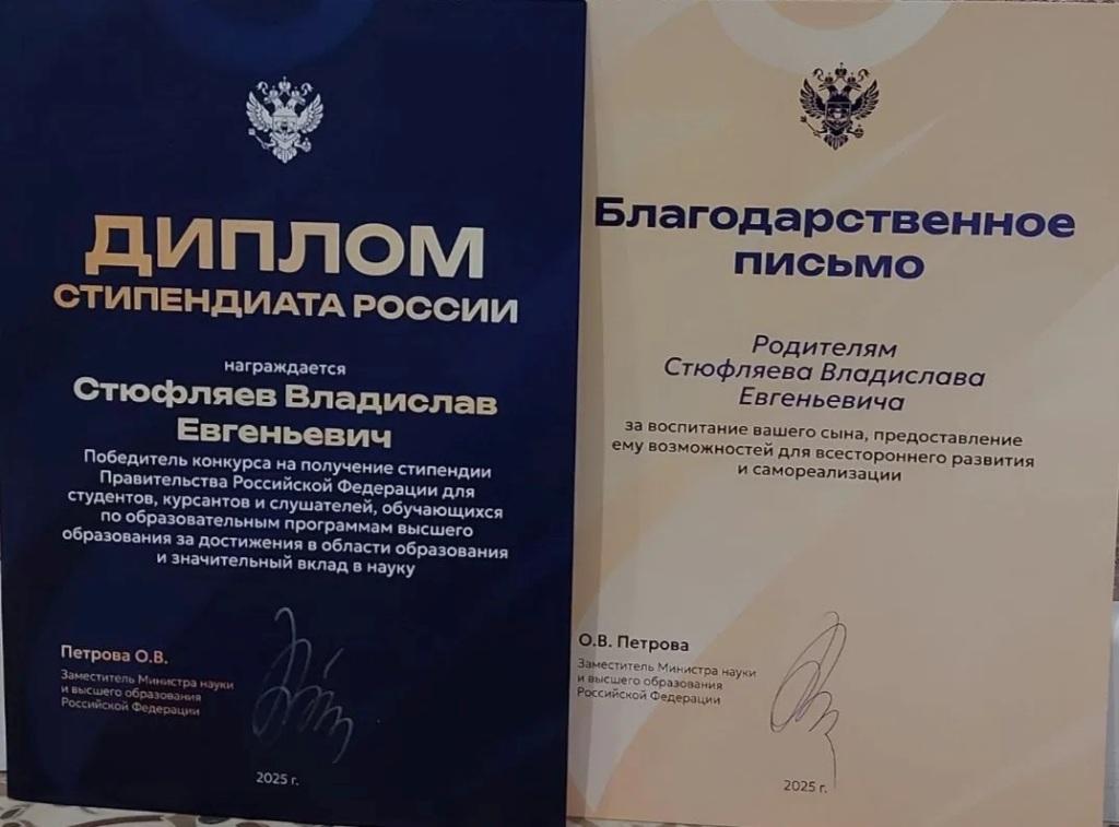 Студенты кафедры дизайна и художественной обработки материалов института машиностроения и транспорта Стюфляев Владислав и Нартова Анастасия стали победителями конкурса на получение стипендии Правительства Российской Федерации для студентов, курсантов и слушателей, обучающихся по образовательным программам высшего образования за достижения в области образования и значительный вклад в науку.