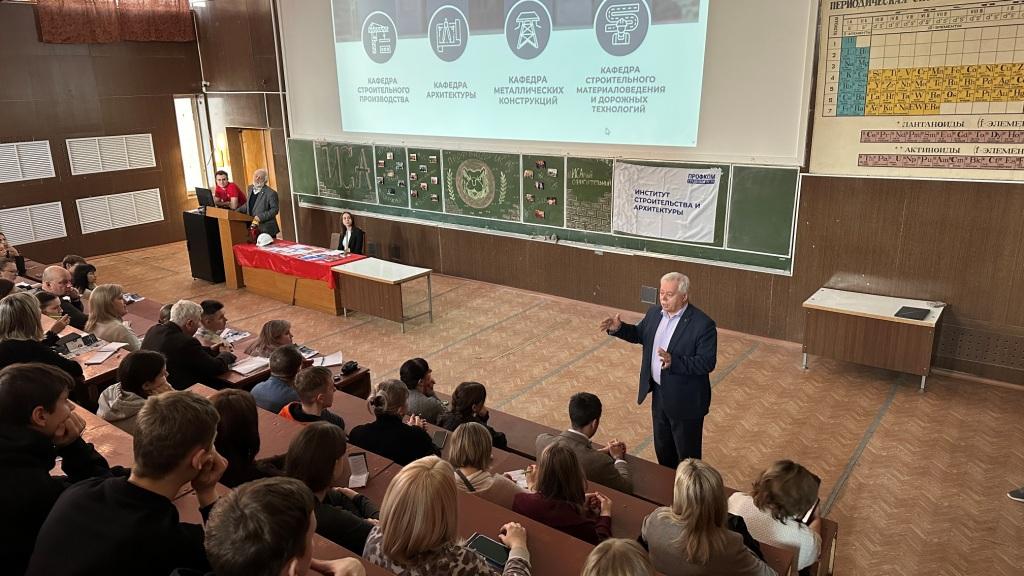Кроме того, участники мероприятия получили подробную информацию о поступлении и особенностях обучения. Председатель приемной комиссии подробно рассказал о контрольных цифрах приема и правилах подачи документов. Заведующие кафедрами поделились информацией о специфике учебных программ, перспективах карьерного роста выпускников и возможных направлениях дальнейшей специализации. В своих выступлениях они также подчеркнули широкие возможности карьерного роста для выпускников специальности строительного профиля и о серьезной востребованности на рынке труда квалифицированных инженеров-строителей и архитекторов.