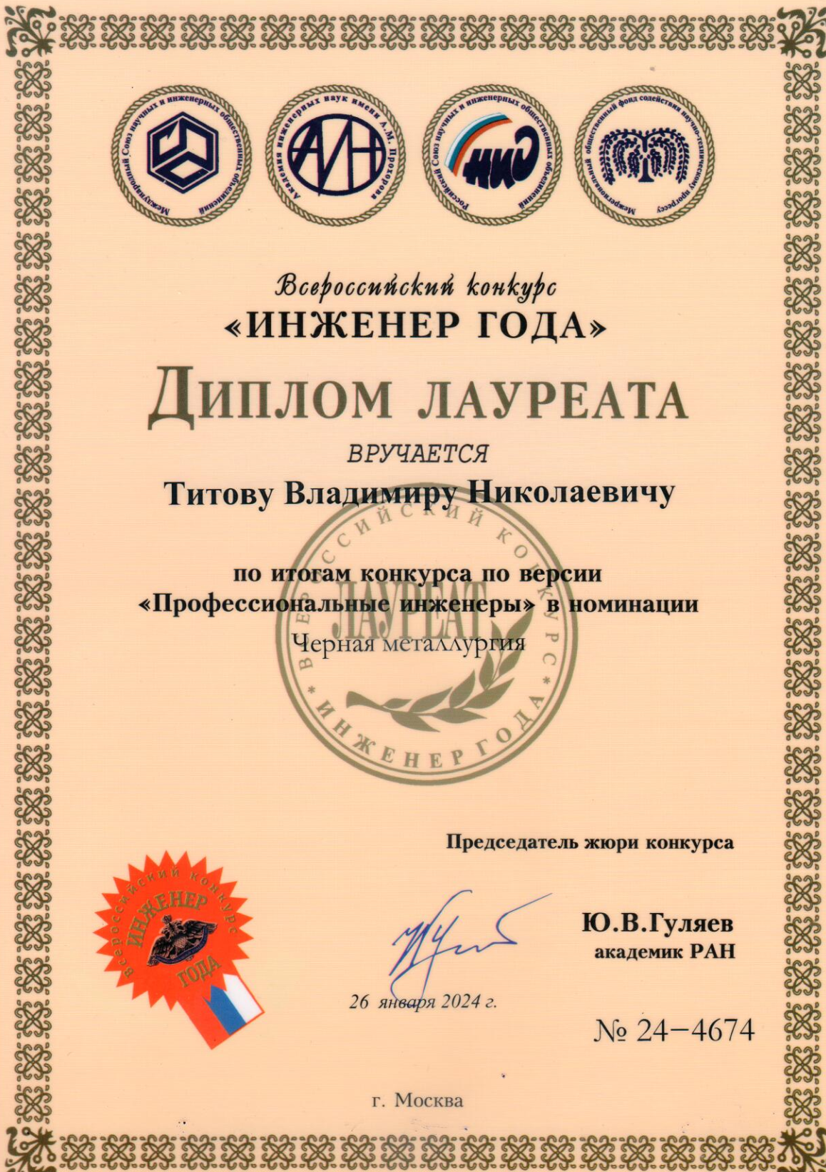 Поздравляем доцента кафедры Титова Владимира Николаевича с присвоением звания лауреата Всероссийского конкурса «Инженер Года»!