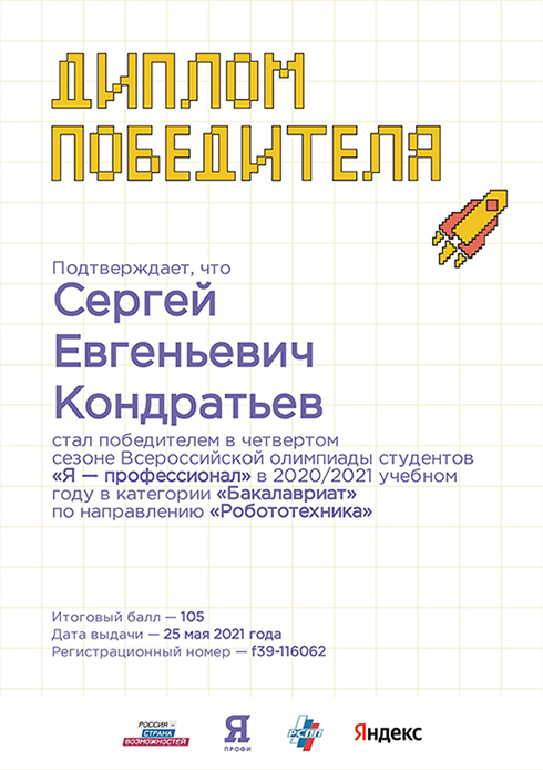 Студент ЛГТУ Сергей Кондратьев стал победителем четвертого сезона Всероссийской олимпиады «Я – профессионал».