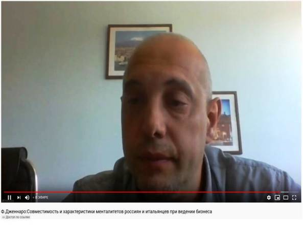 В своем выступлении Франческо, который уже 10 лет живет в России и имеет возможность сравнивать, сделал акцент на некоторых сходствах и различиях русской и итальянской культур, предложив возможные компромиссы в русско-итальянском сотрудничестве. В частности, спикером были отмечены такие особенности менталитета русских, как стремление жить здесь и сейчас, не задумываясь о будущем, что помогает им принимать оперативные, но правда временные решения; высокая степень уважения к иерархии, начальству, благодаря чему намного легче заставить работников соблюдать правила, в то время как итальянские руководители «мягки и демократичны», но в этом также есть положительный момент — прямой контакт директора с подчиненными позволяет ему иметь полную картину происходящего. Франческо рассказал, что в Италии начальник часто оценивается по информации, поступающей непосредственно от подчиненного. В «СЭСТ-ЛЮВЭ» 260 работников, и все сотрудники имеют диалог с руководством. Таким образом, существует правильное сочетание между русским уважением к иерархии и итальянской концепцией диалога со всеми.