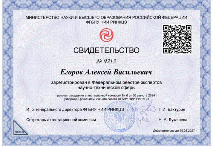 Проректор по научной работе ЛГТУ, доктор технических наук, доцент А.В. Егоров зарегистрирован в Федеральном реестре экспертов научно-технической сферы.