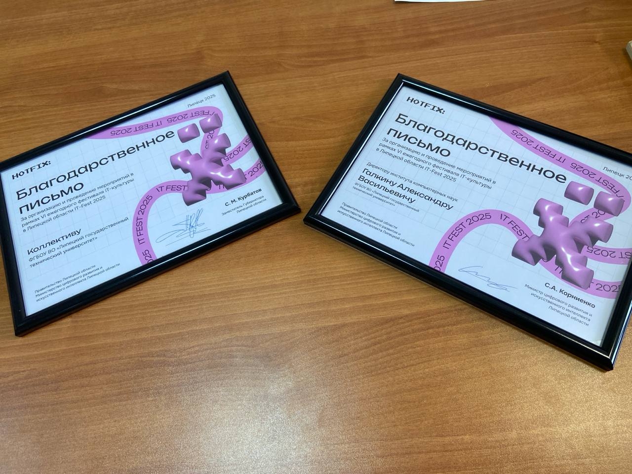 Сотрудники ЛГТУ получили благодарственные грамоты за активное участие и организацию мероприятий в рамках VI ежегодного фестиваля IT-культуры в Липецкой области "IT-Fest 2025"! Также был отмечен вклад директора Института компьютерных наук Александра Галкина.