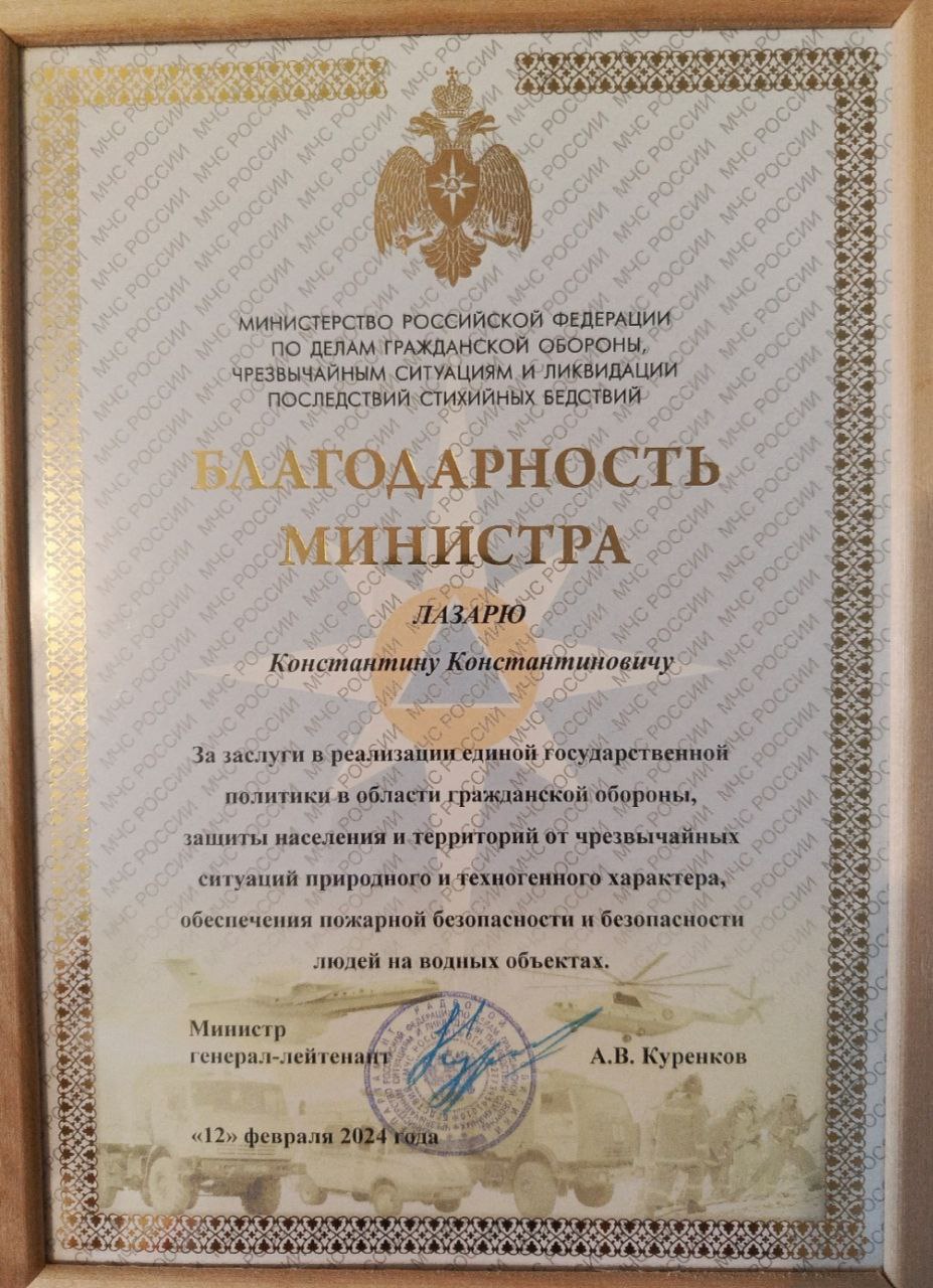 Студент ИКН Константин Лазарь удостоен благодарности Министра МЧС России