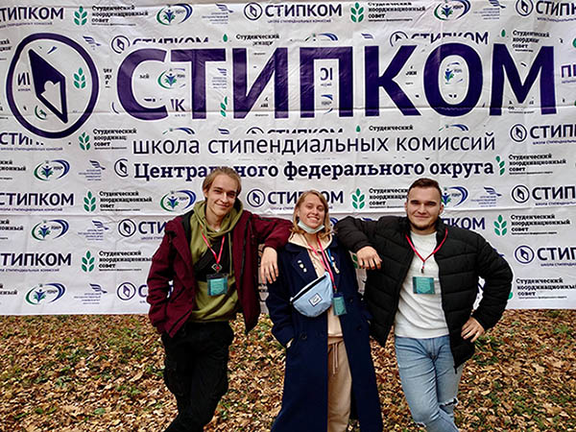 С 23 по 25 октября на интенсиве в Орле Максим Дубравин (УК), Валерия Коняхина (ИМ), Александр Бизин (ФГСНиП) поучаствовали в тренингах, интерактивных занятиях, круглых столах по обмену опытом, а также встречах с экспертами и общественными деятелями. В частности, активисты посетили лекции на темы «Виды стипендий: академическая, социальная и другие формы поддержки», «Повышенные государственные социальные и академические стипендии».